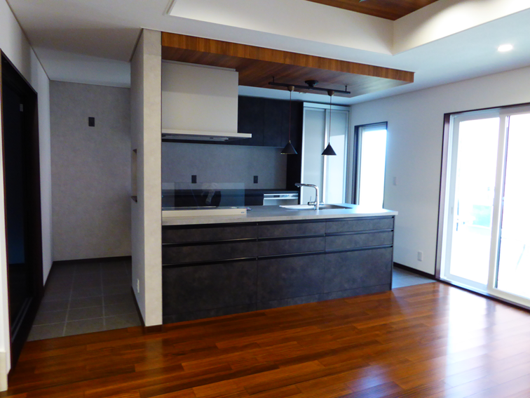 料理が楽しめるキッチンが主役のシックモダンな住まい