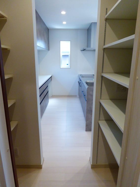 キッチン横に設けたパントリーは、食品や日用品をたっぷりとストックできる大容量サイズです。