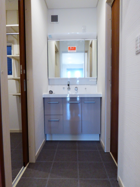 洗面所と脱衣所を独立させたことで、家族が気兼ねなく使える便利な間取りです。