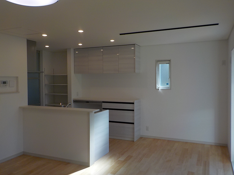 リビング全体を見渡せる対面キッチンは、家族との会話を楽しみながら料理ができます。