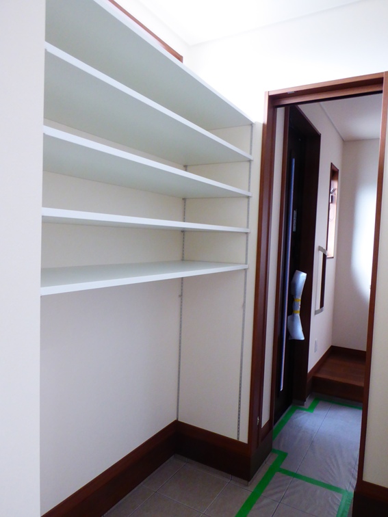 玄関横に設けたシューズインクロークから、パントリー、キッチンへとつながる便利な動線です。