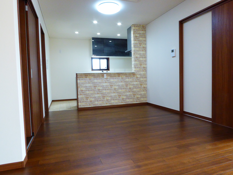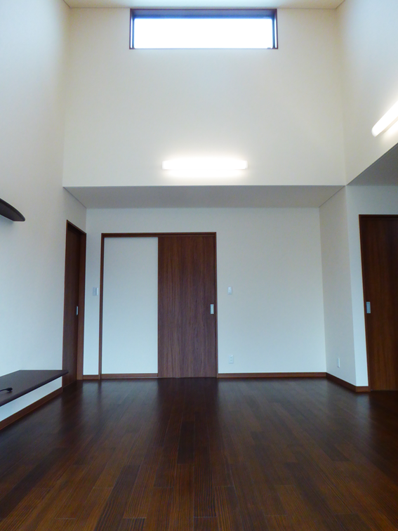 高窓から光がたっぷりと差し込み、家族が集まる明るい空間です。