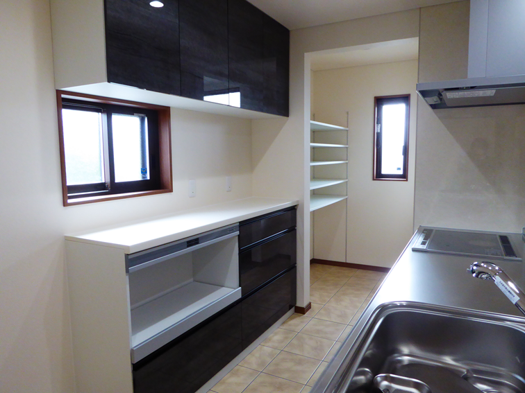 奥には大容量のパントリーもあり、食品や日用品のストックをたっぷりと収納できます。