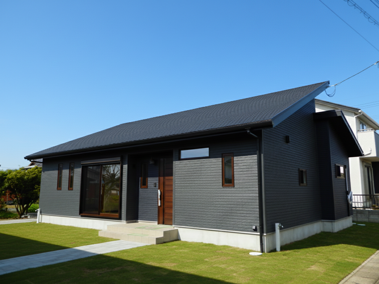 ブラックの外壁色とブラックのサッシで統一した、シックでモダンな外観です。