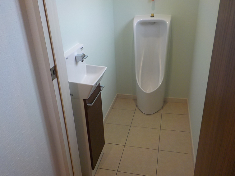 男性用の小便器を設置したことで、家族みんなが快適に使える機能的なトイレです。