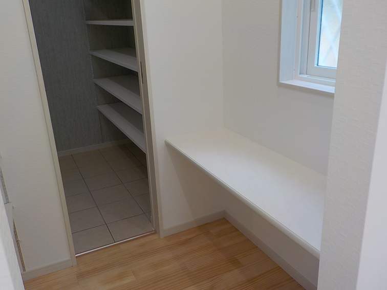 キッチンの横に設けたカウンターは、お子様の学習スペースや、パソコンを使うスペースとしても活躍します。