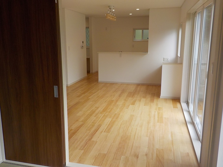 16.3帖のLDKは、家族が自然と集まる明るい空間です。