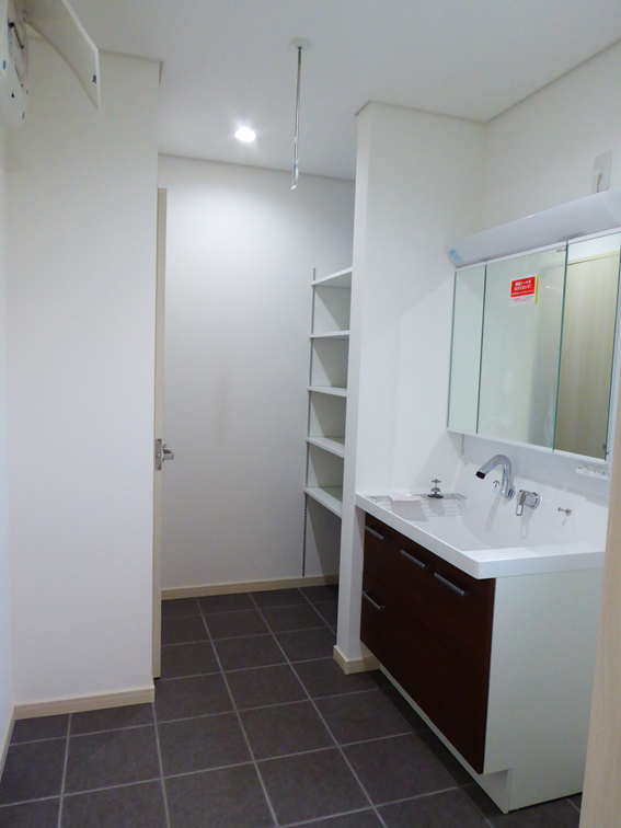広めに設計された洗面脱衣所は、朝の忙しい時間でも家族みんなでゆったりと使えます。