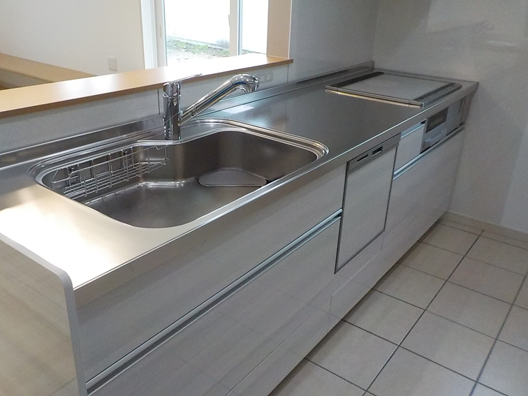 床は水や油汚れに強くお手入れしやすいタイル張りを採用しました。