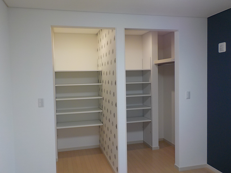 主寝室のクローゼットは、ご夫婦それぞれが使えるパパ・ママ別々のクローゼットを採用し、衣類の管理がしやすくなっています。