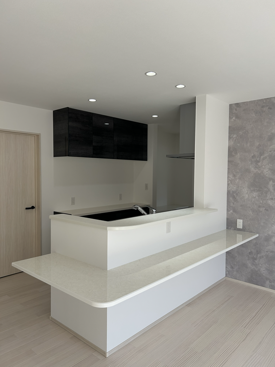 対面式キッチンの前面には、便利なカウンターを設置しました。