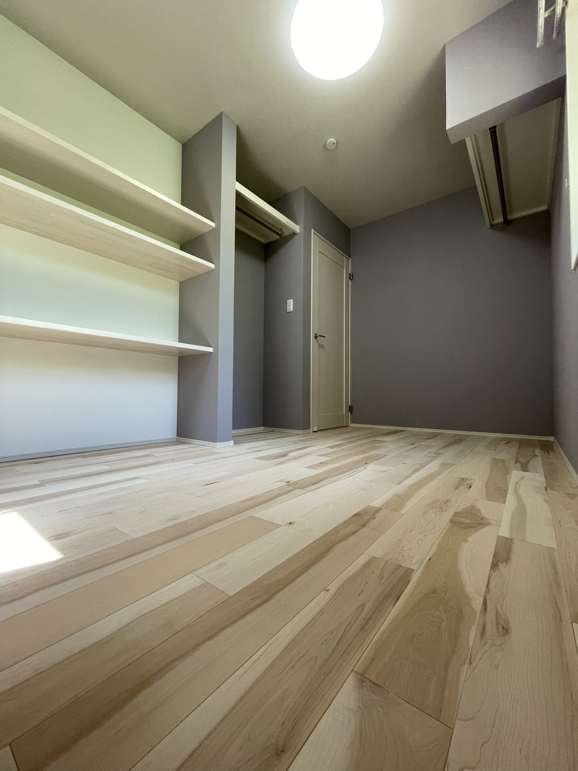 こちらは一転して、明るい色味の無垢床が広がる洋室