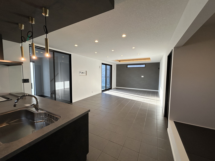 全面床タイル仕様のLDKが圧巻!!おしゃれで高級感ある住まい