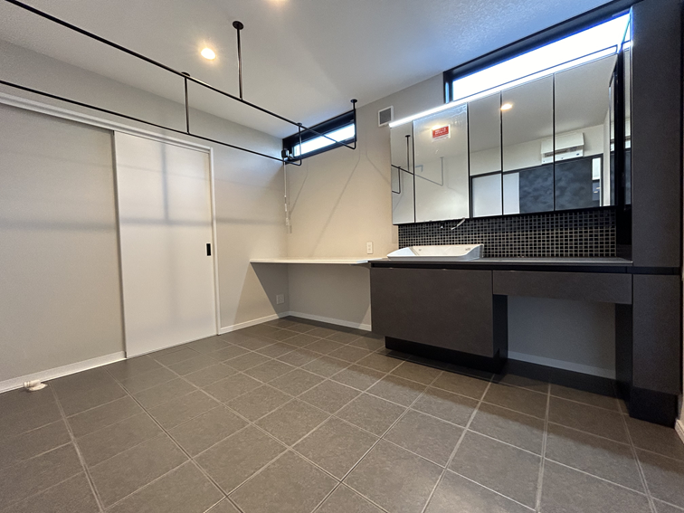 ワイドなカウンターやランドリーパイプを備え、デザイン性と使いやすさを両立させました。