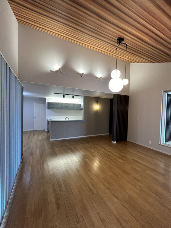 19.6帖のLDKは、勾配天井による開放感が魅力。