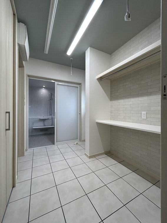 広めに設計した脱衣所は、洗濯物を畳んだりアイロンをかけたりするランドリースペースとしても活用できます。