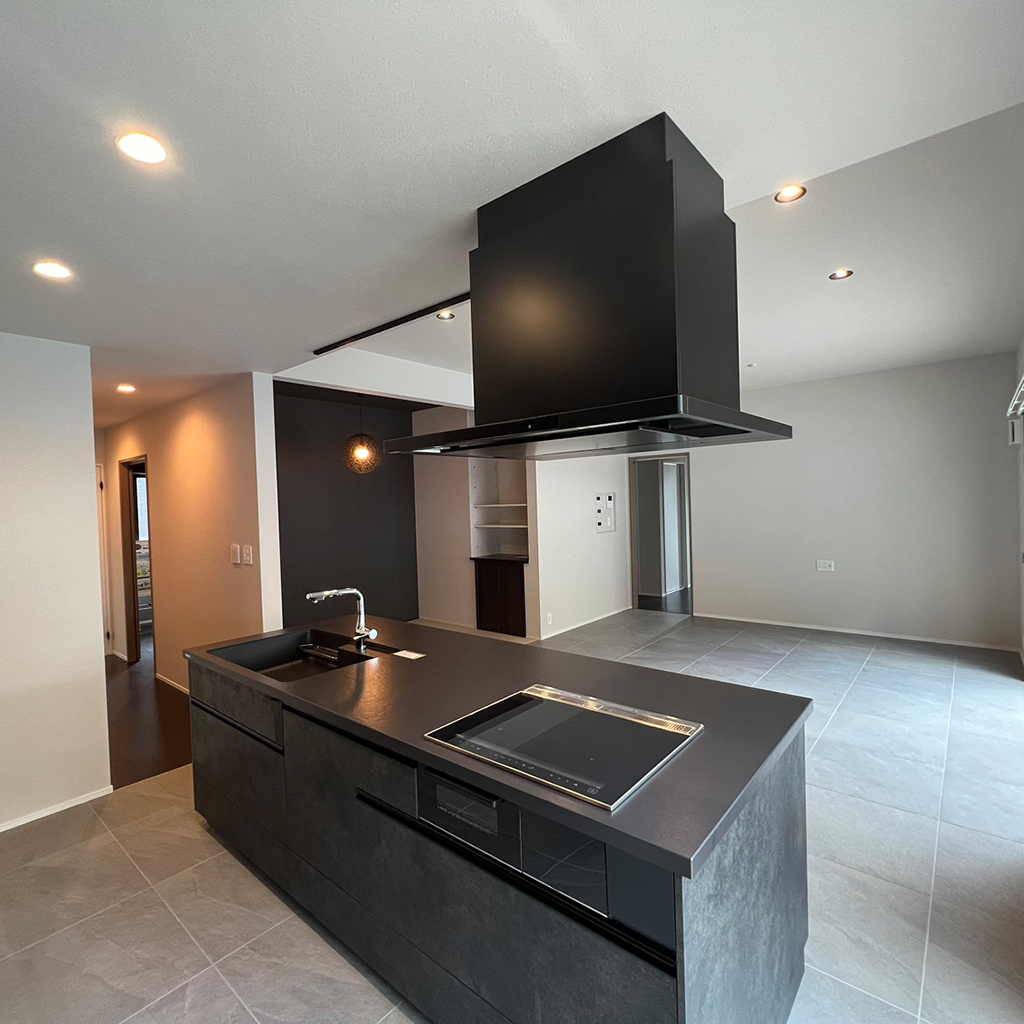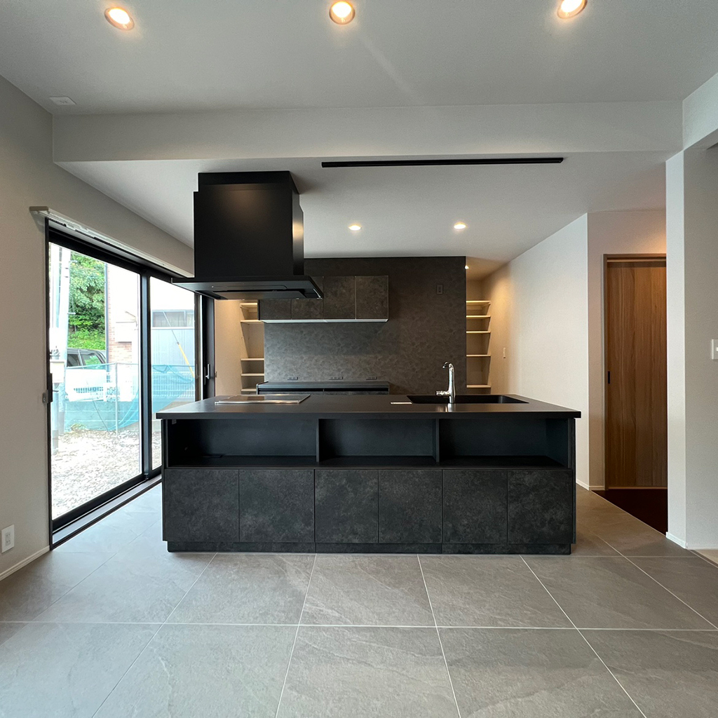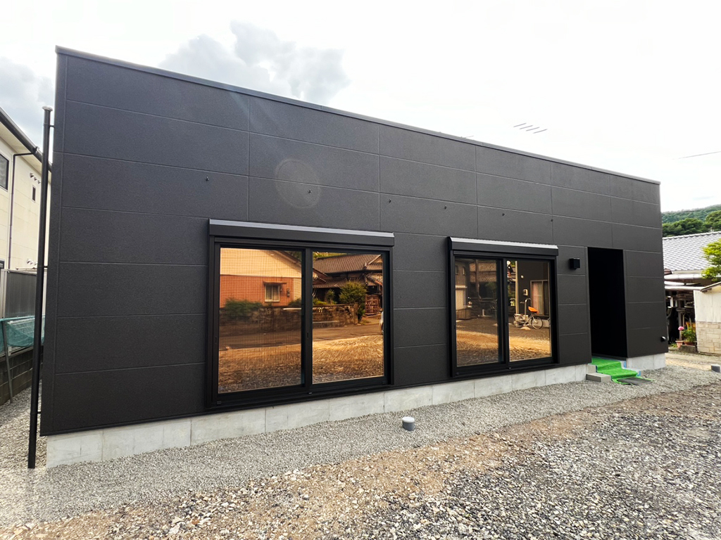 黒系1色で、四角い箱型のスタイリッシュな感じに仕上げ、どこから見ても四角いお家でカッコいいですね。