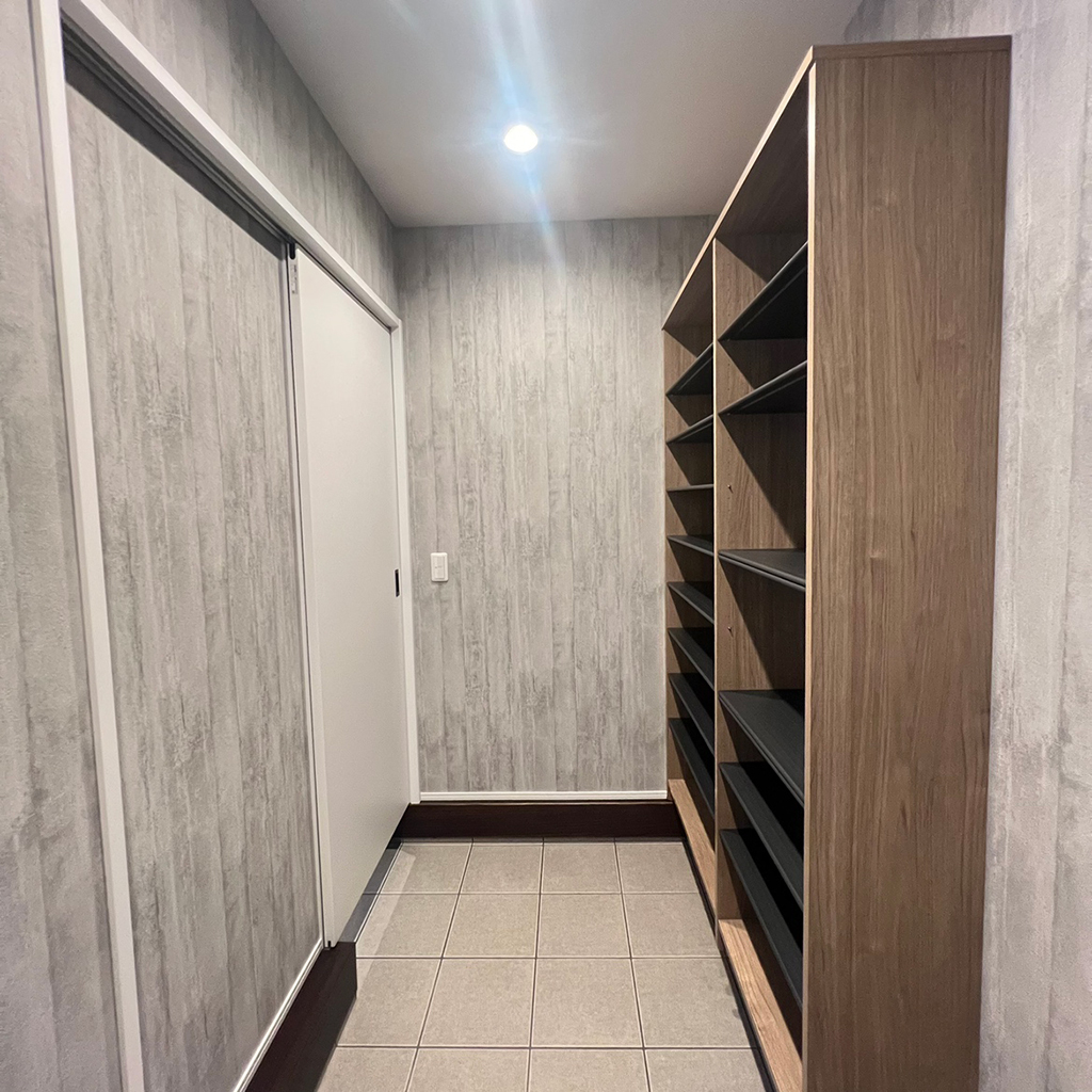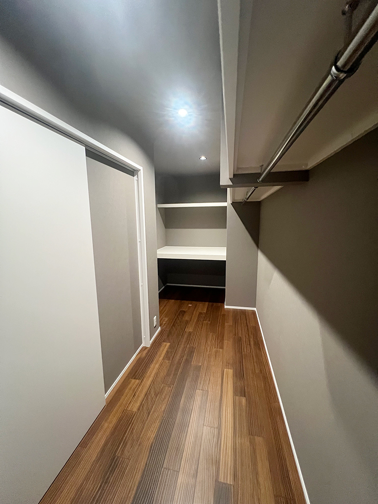 洗面所そばには大きなファミリークローゼットがあります。 洗って干して収納するが一連の流れでできます。