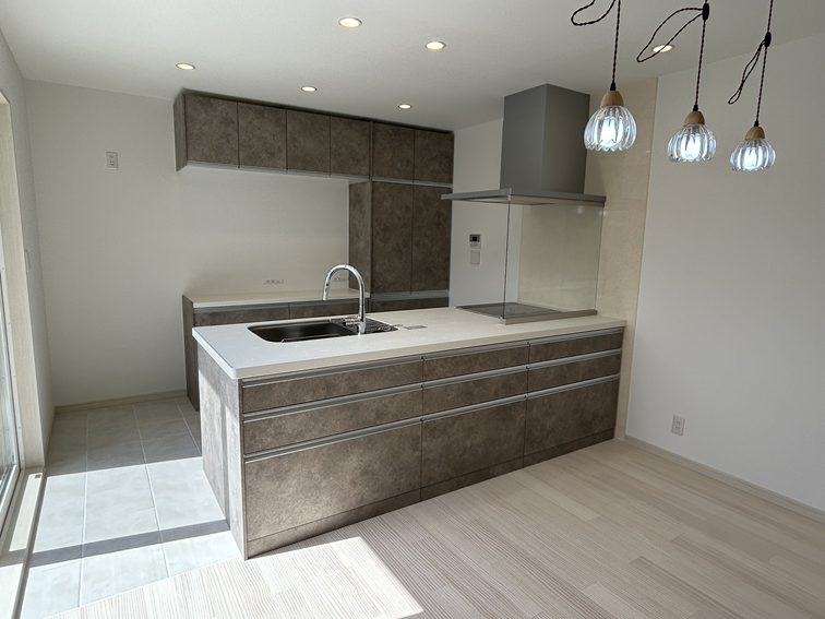 床には、水や油汚れに強くお手入れも簡単なタイルを採用しました。