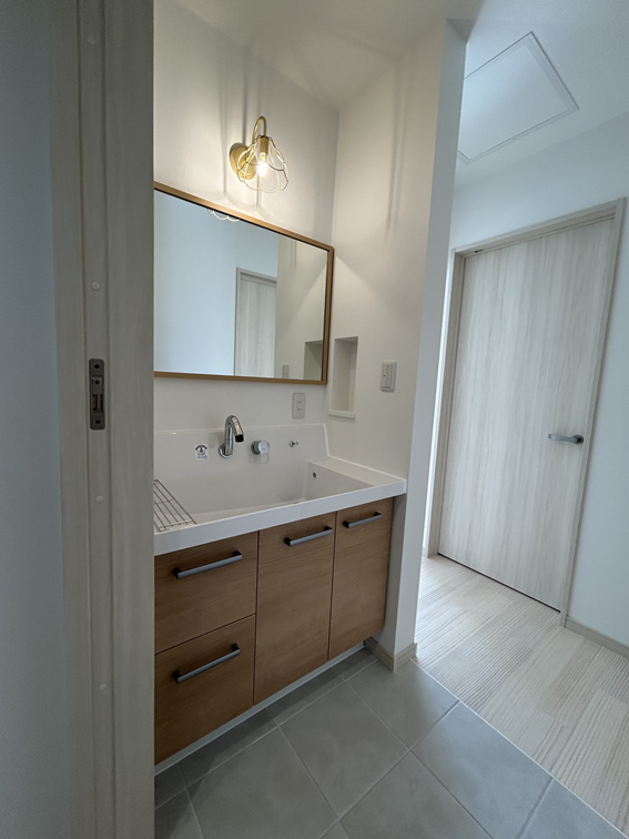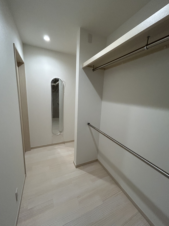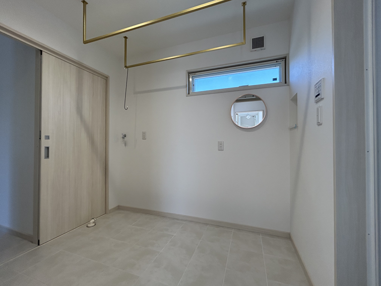 脱衣所には、雨の日でも洗濯物が干せる物干し金物を設置しました。