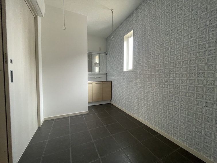 洗面所は少し広めに設計し、物干しを設置。