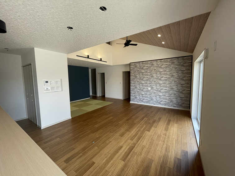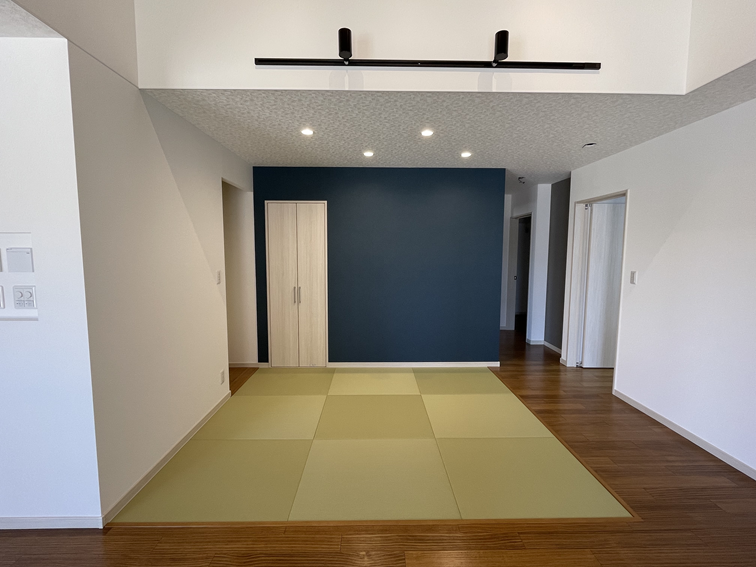 隣接するオープンなタタミコーナーは、お子様の遊び場やお昼寝スペースとしても活躍します。