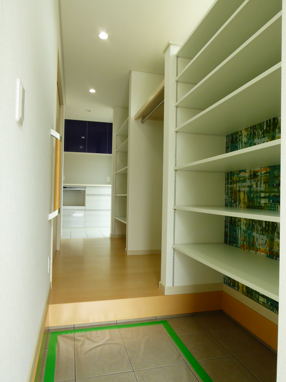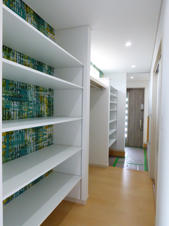 玄関からシューズインクローク、ファミリークローク、そしてキッチンへとつながる便利な動線です。