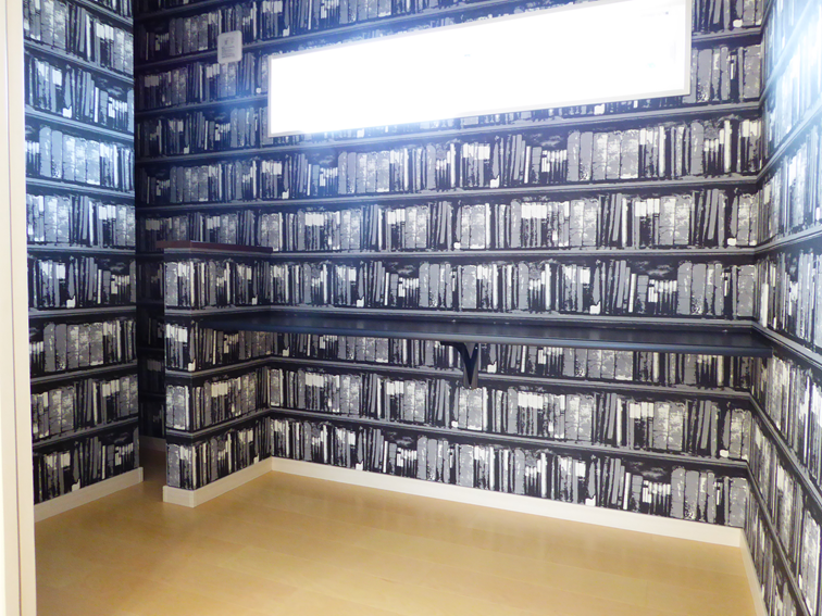 リビングに隣接した書斎は、個性的なクロスが空間のアクセントになっています。