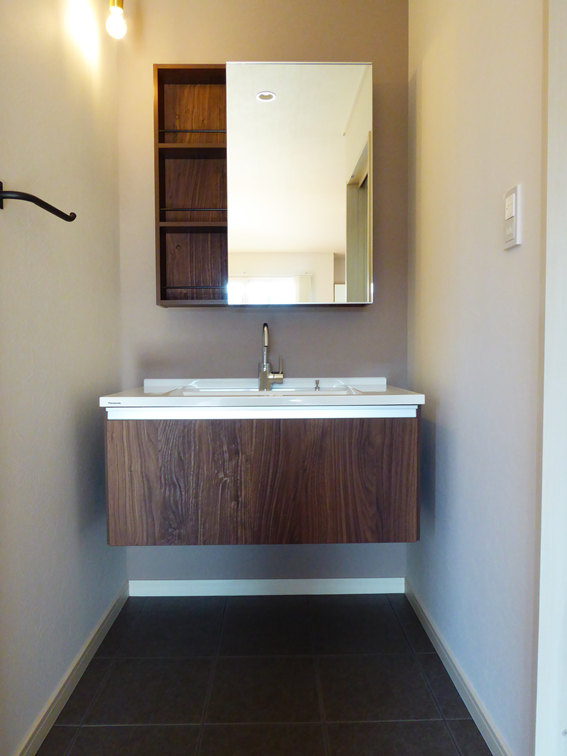 洗面化粧台は、施主様のこだわりが詰まったデザイン性の高い空間です。