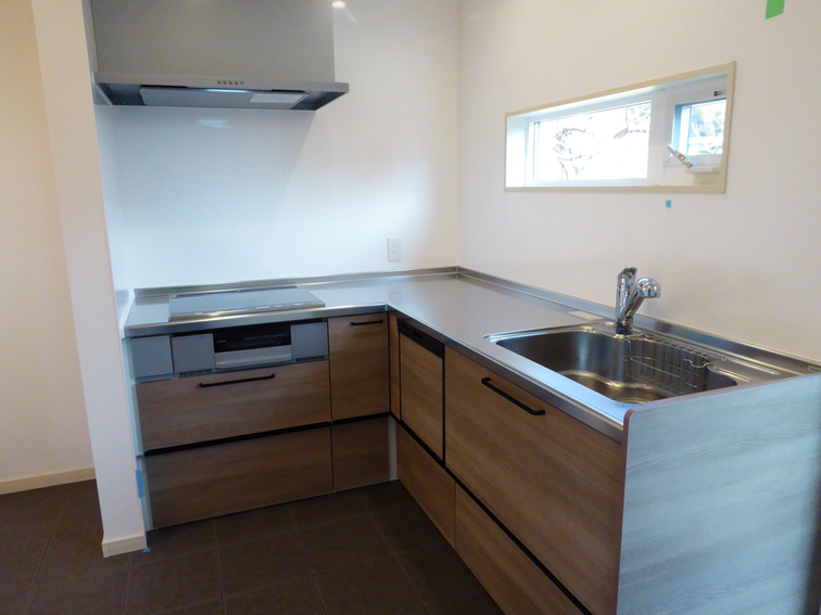床は水や油汚れに強いタイル張りなので、お手入れも簡単です。