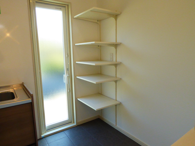 可動棚も設置し、洗剤や洗濯用品をすっきりと収納できます。