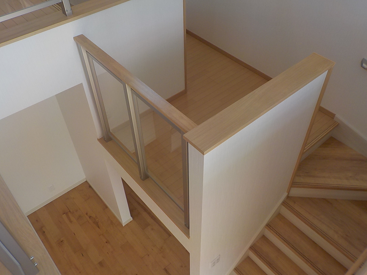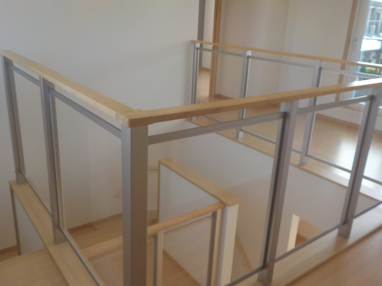 手摺には開放感のある透明パネルの手すりを採用し、空間を広く見せています。
