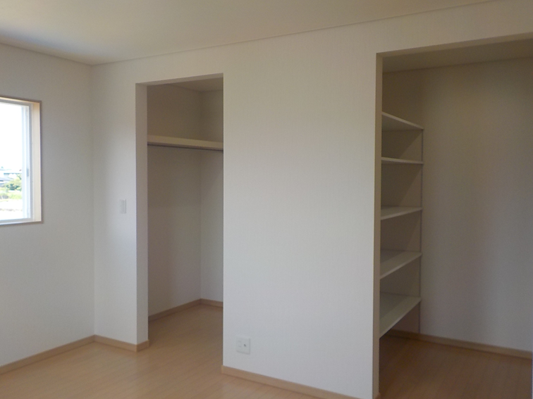 主寝室のウォークインクローゼットは、ご夫婦の生活スタイルに合わせて夫婦別々のクローゼットを確保。