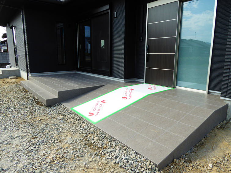 玄関ポーチは、階段ではなく緩やかなスロープにしました。