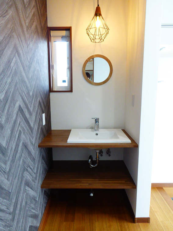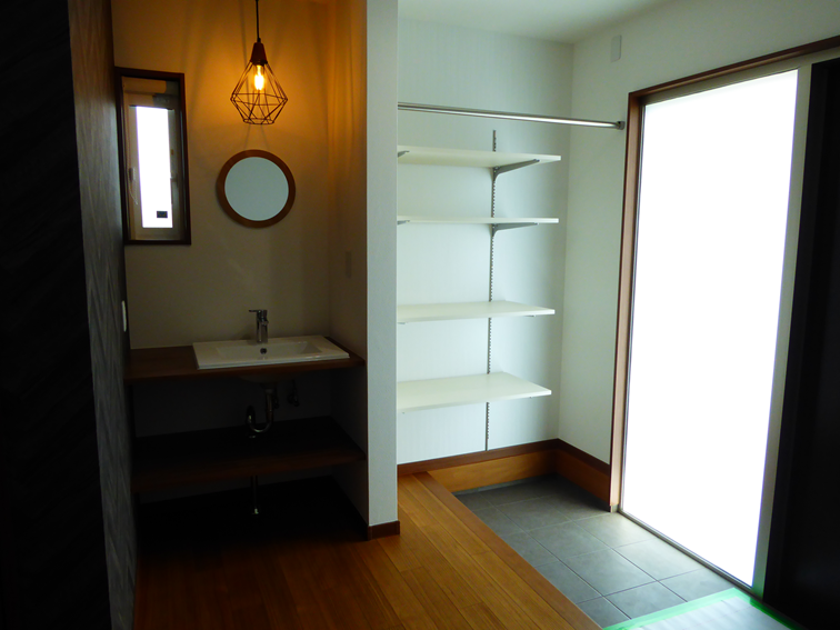 玄関を入ってすぐの場所に、おしゃれなカウンター式の洗面化粧台を設置しました。