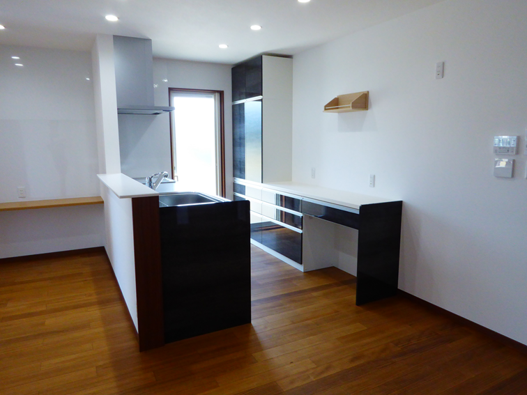 キッチンの前には、家事や雑事に便利なカウンターを設けました。
